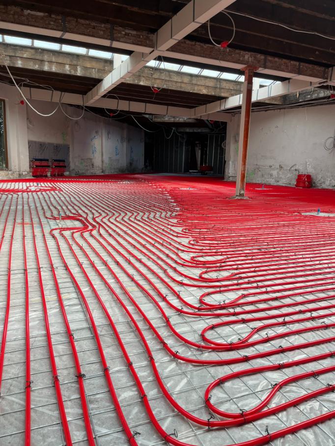 In het Ichthus Lyceum in Driehuis hebben wij de bestaande zandcement dekvloer vakkundig voorzien van ingefreesde vloerverwarming. Het volledige systeem is opnieuw opgebouwd, inclusief het aansluiten en afmonteren van de verdelers.