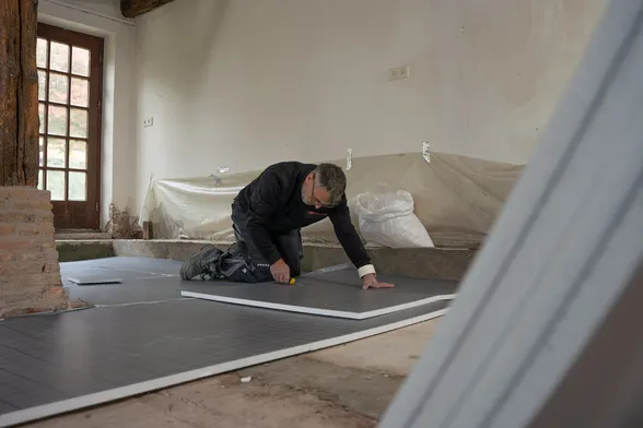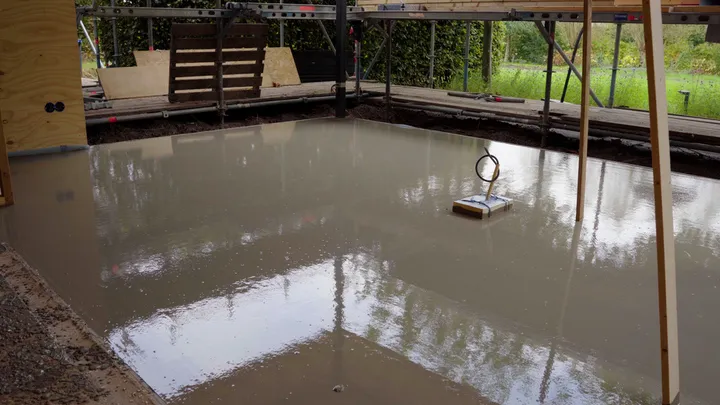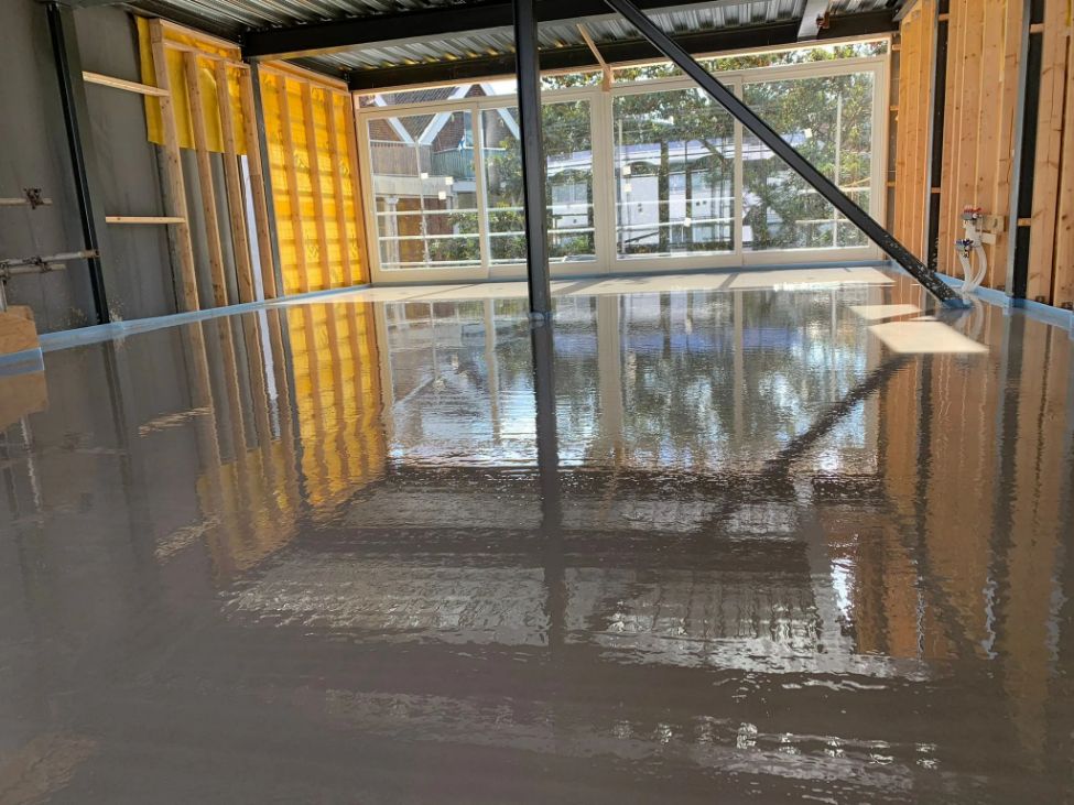 - Alles onder één dak: schuimbeton, vloerverwarming, dekvloer