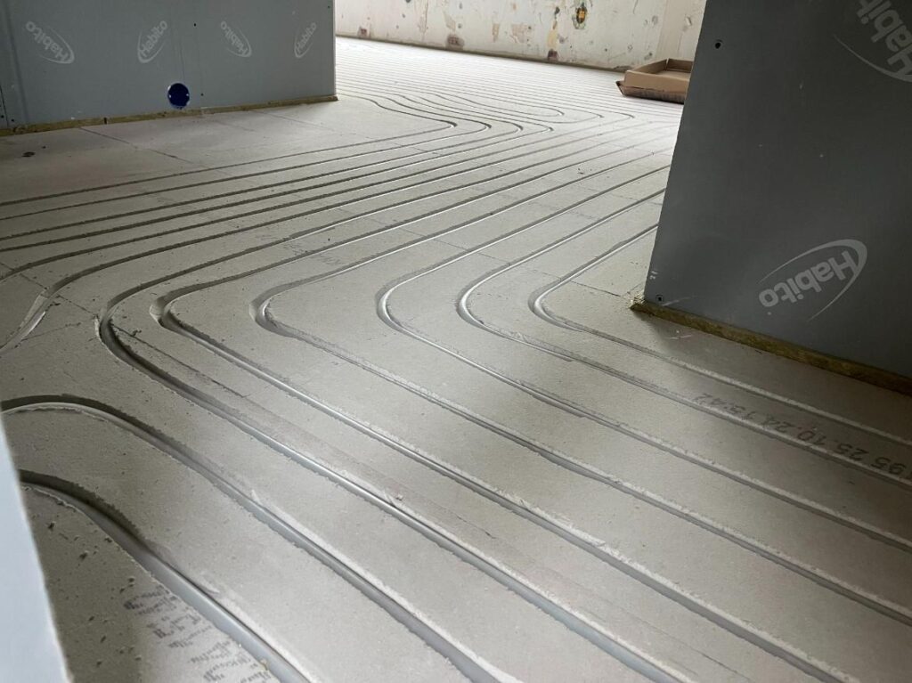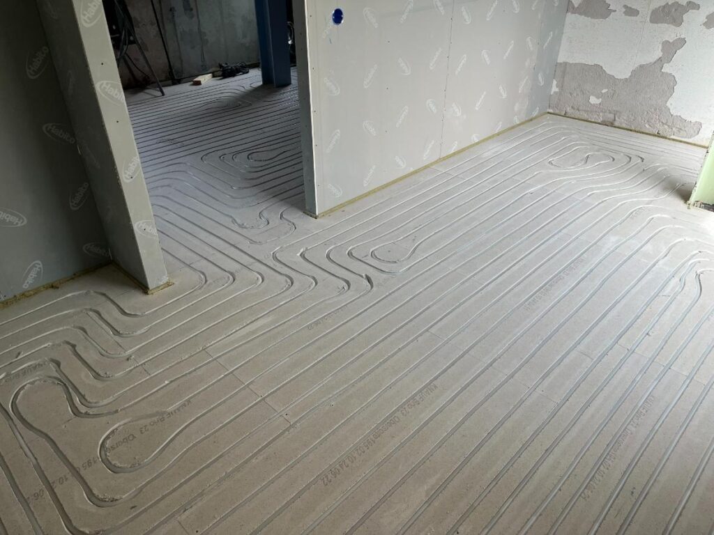 Vloerverwarming infrezen gebeurt snel en met minimale overlast. De buizen worden direct geplaatst in de gefreesde sleuven, waarna de vloer snel weer klaar is voor verdere afwerking.